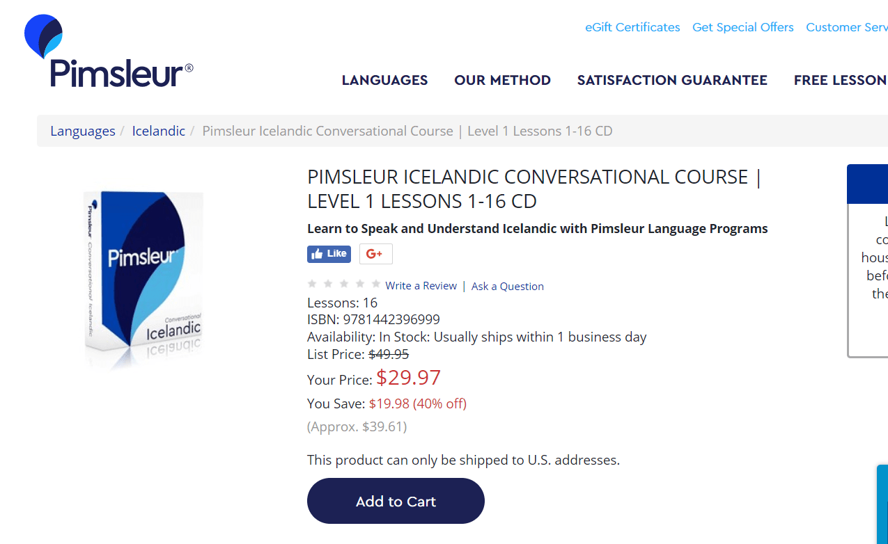 If I were younger, I might make a point of learning the Icelandic language. The vast majority of Icelanders speak the language and a tiny fraction speak English. So, to get along comfortably in the country, I would think it would pay to speak the native language. And, as you can see from the image, I could start the process for under $30. That’s a small price to pay for a modicum of comfort during a visit to the country. Which, by the way, could become more than a visit. Iceland could become a lifelong home. I haven’t extensively explored the relative ease or difficulty of immigrating to Iceland, though I gather from limited investigation that I’d have an easier time of it if I were European. The process involved in becoming European is probably not worth it, though, so I’ll just have to explore direct immigration to Iceland, without an intervening European re-homing.